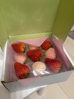 まゆです🎀 地元の友達からLINEギフトでいちごもらった🍓🫶🏻🫶🏻🫶🏻🫶🏻 甘すぎてびっくり 白のいちご初めて食べたけどふつうのいちごより甘すぎて声出た( т т ) 毎日大事に1個ずつ食べてた