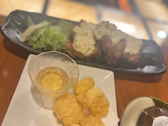 あんにょん もつ鍋の日にたべた南蛮とチーズ天❤︎ 美味しすぎた、また食べたい。❤︎