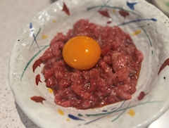 あんにょん いきつけの焼肉屋さんのユッケが美味すぎて ライスも頼んでユッケ丼にしちゃいます 幸!