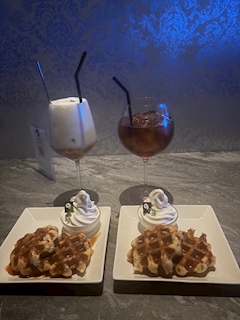 まゆです🎀 また夜カフェ行ってきた^ >ᴗ<^遅い時間までやってるしワッフル激うまだし落ち着くからめっちゃ行っちゃう💫 こういうとこは女友達と行くのがいちばん😼🫶🏻
