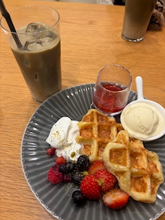 まゆです🎀 友達と友達をご対面させてみた日🙂↕️2人ともノリ合って初対面なのに仲良くなっててたのしかったദ്ദിᵔ.˛.ᵔ₎💯💮 お買い物してワッフル食べて沢山話した💫💫 2025終わるよーしゅっきん!