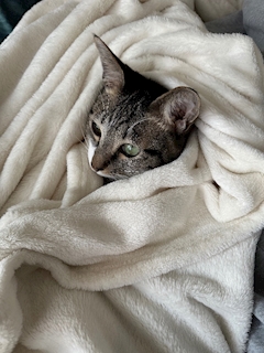 今日もお疲れ様です☺️✨ 2月22日は猫の日でしたねーっ!😸 我が家の猫はスーパーボールをどこからか持ってきて遊び暴れ回ってました😹 やんちゃで遊ぶの大好きでだけどめっちゃ甘えん坊でずっとくっついてきます🐈🤎 ほんっとに可愛い😻 フリースにくるまって顔だけ出してる猫さんです😽💕