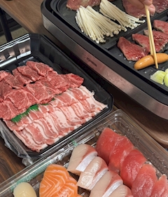 あんにょん この前、地元のお友達たちと宅パしました❤︎ コストコのお寿司ってお刺身ぶあつくてだいすき❤︎ 焼肉もサイコーでしたぁ